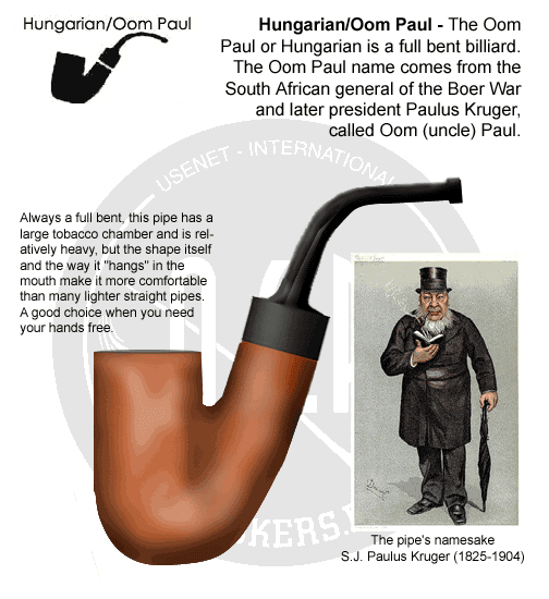 While the origins of the shape, as with so many others, is shrouded in its share of mystery, the name derives from the belief by many that it had its origins with President S. J. “Paulus” Kruger (1825-1904) of South Africa, known as “Uncle Paul” or “Oom Paul” in Dutch (pronounced Ohm Pah-uhl, rhyming with “Ohm’s Law”). There is not only justification for the legend, but it is a well-recorded fact that Kruger not only an oom paul, but a Kapp & Peterson oom paul, as we document in the Peterson book.