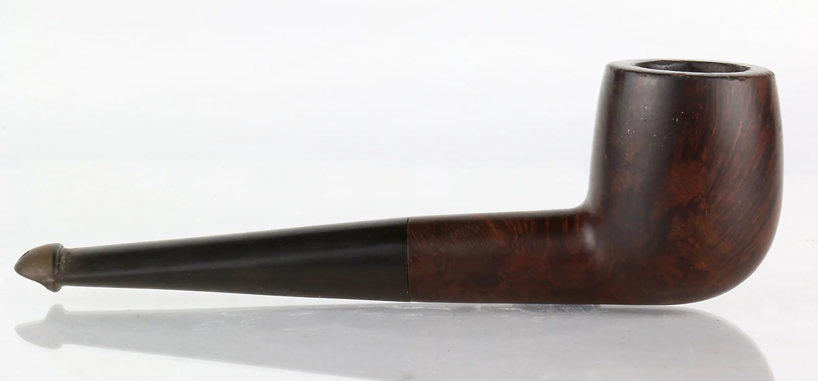 When I got the pipe, the airway in the stem was blocked and the bone tenon frozen. The previous smoker may never even have used a pipe cleaner in it, which didn’t become commonplace until the 1940s. 2 Using a bristle cleaner soaked with isopropyl alcohol, I eventually broke through the clog and was able to completely clean the airway. The drilling is such that a cleaner runs freely from the P-Lip tip through the tenon extension without a hitch. DeLuxe, indeed.