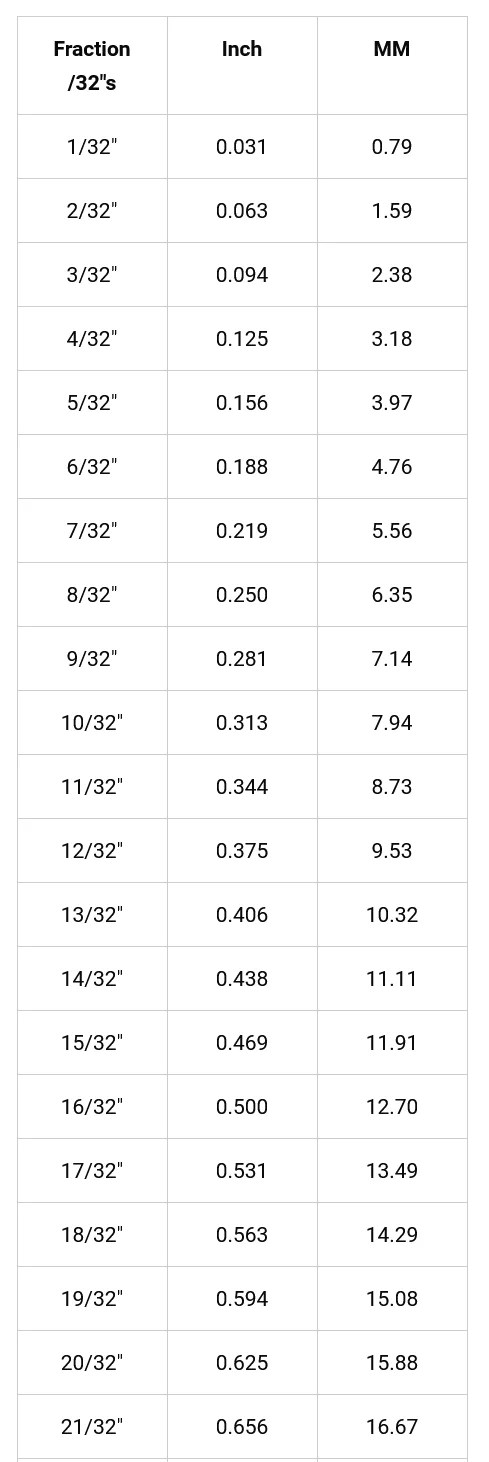 * So yeah, I had to use a tire tread depth conversion chart to keep all this straight: